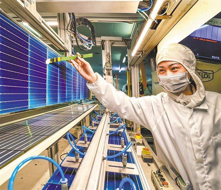 2月18日正规炒股配资官网,安徽省马鞍山经开区茂迪新能源有限公司生产车间,员工在赶制太阳能光伏组件。王文生摄(中经视觉)